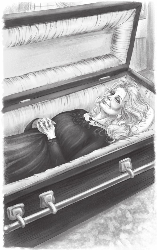 Посреди комнаты стоял деревянный гроб, обитый изнутри красным бархатом. По маленькой подушечке рассыпались кудрявые волосы. Матильда лежала в гробу, скрестив на груди руки. Едва послышались шаги и скрежет в замочной скважине, как она закрыла глаза и поджала губы. Губы! Она забыла накрасить губы. Собственные похороны – это ведь такое дело: все моменты должны быть продуманы.