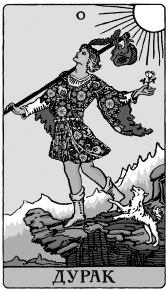 Десять желтых кругов – десять сфер, формирующих Древо Сефирот, которое материализуется из небытия и выстраивается в определенную схему. Хаотичное расположение сефир на одежде Дурака указывает на то, что он представляет собой тот процесс, который предшествует формированию структуры, а потому и соответствует нулю.