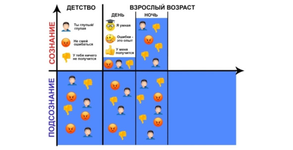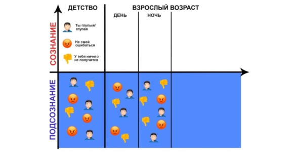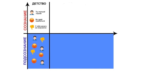 Травмирующие фразы, услышанные в детстве, бессознательно формируют восприятие человеком самого себя. И пусть времени прошло уже много, но время не стирает и не исправляет. Со временем событие из кратковременной (активной) памяти переносится в долговременную память.