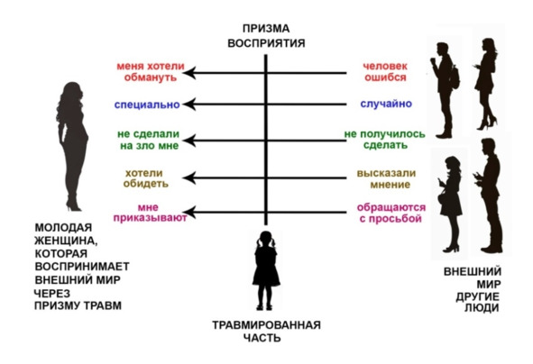 Так как обстоятельства, события и слова воспринимаются через травмированную призму восприятия, то они искажаются и воспринимаются максимально субъективно (рис. 10).