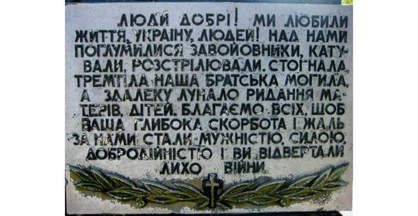 Мемориальная табличка на памятнике жертвам нацизма в селе Паволочь