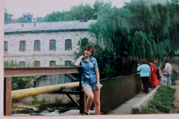 Моя дочь Наташа на мосту через реку Роставицу у старой мельницы, 2000 год