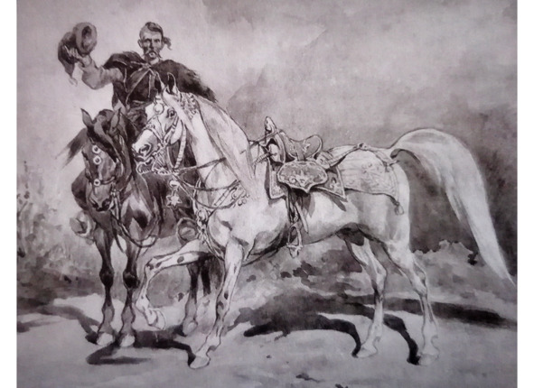 Казак с верховым конем. Художник Юлиуш Коссак, 1884 год