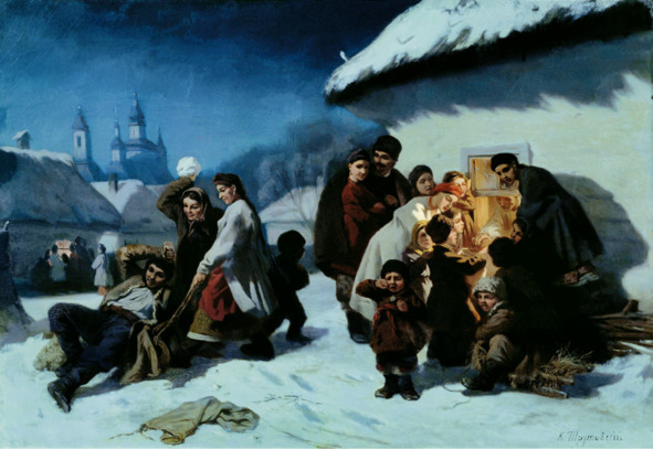 В особенности это следует сказать о деревенских жителях, и, главным образом, о южно-русских крестьянах. Здесь крестьянин так же наивен как дитя. Он отдается празднику всей душой, всей глубиной религиозного чувства, во время праздника крестьянин перерождается: радуется, поет, веселится… И столько пылкою фантазиею южно-русского народа измылено обычаев для того, чтобы придать рождественским святкам побольше торжественности и внешнего эффекта…