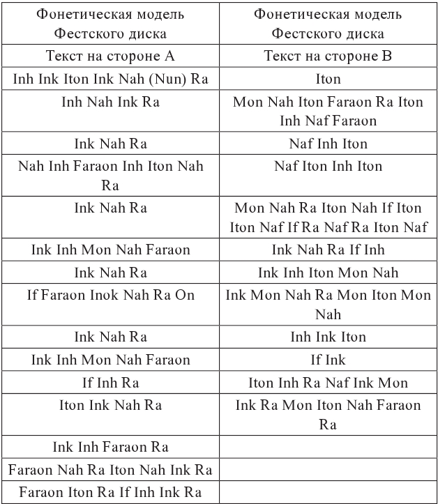 Но проводить идентификацию и дешифровку Фестского диска мы будем иным методом – его можно назвать фонетическим.
