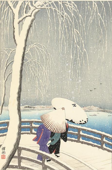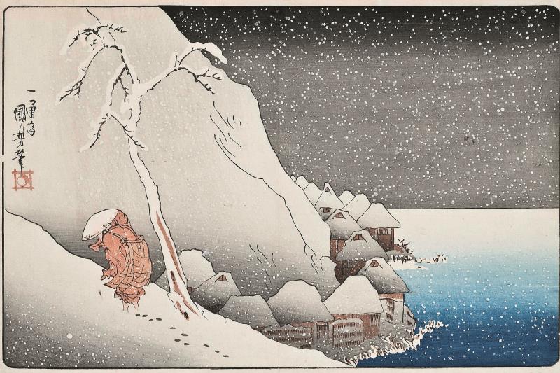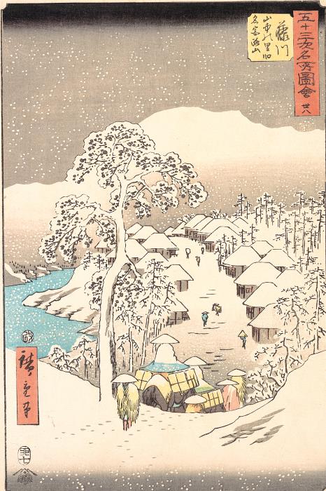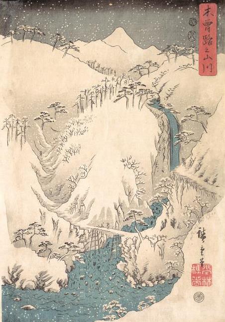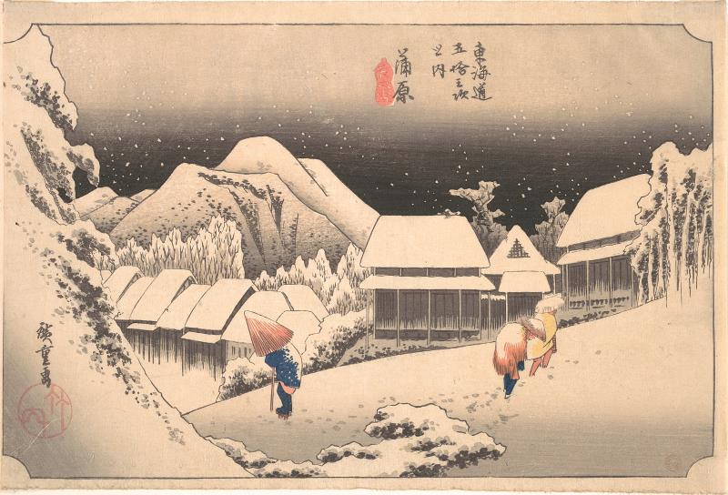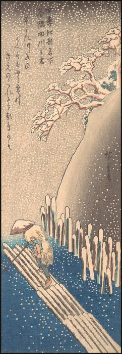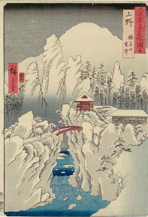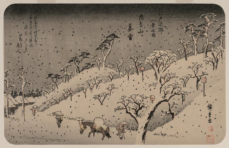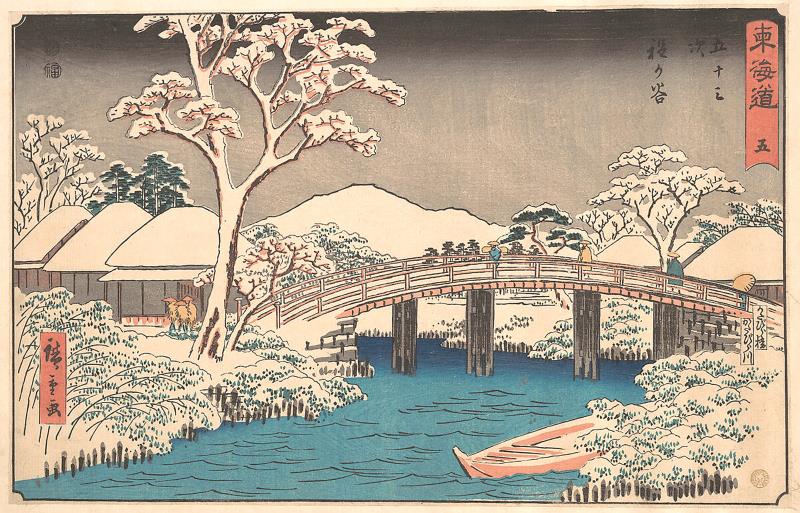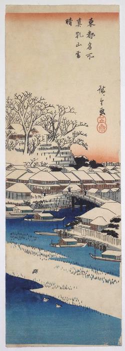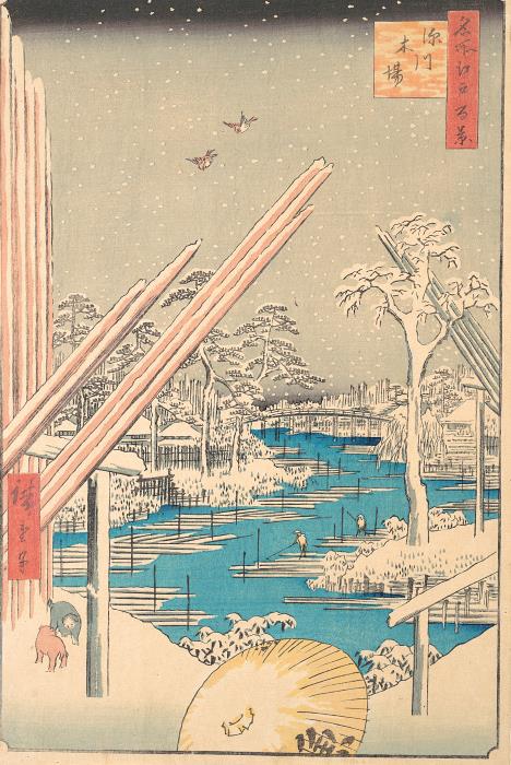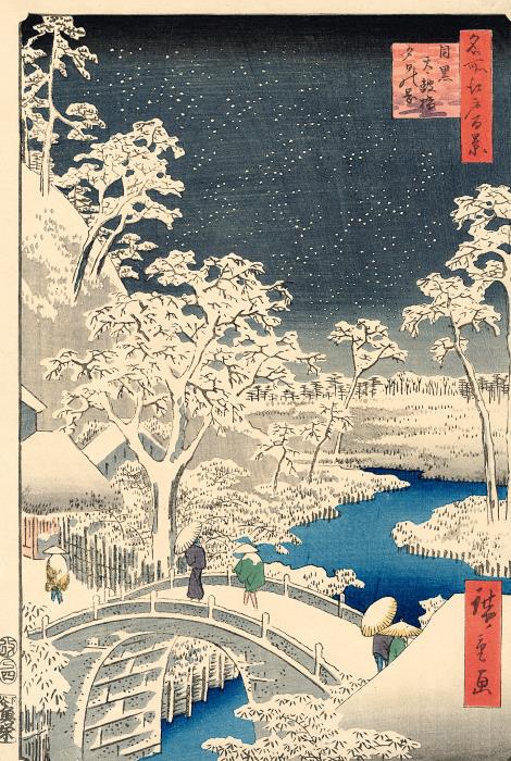 На обложке представлена гравюра Утагавы Хиросигэ «Мост Тайко в Мэгуро заснеженным вечером».