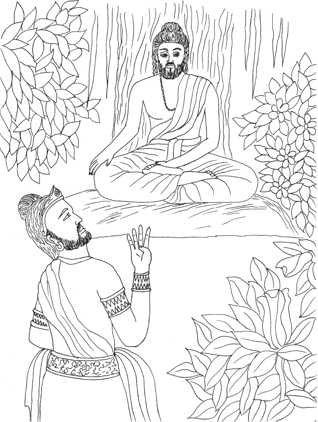 Бродя по саду, они наткнулись на аскета, который сидел и медитировал у подножья цветущего дерева сал.