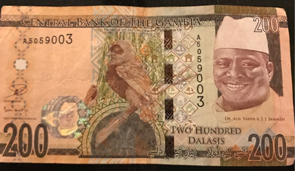 Вообще-то, в Гамбии сумка денег – это не так много. В 2017 году курс национальной валютной единицы колебался около 50 даласи за доллар. То есть, даласи стоил чуть больше рубля. Но если в России мы уже давно имели красненькие пятитысячные купюры, то самой крупной бумажкой в Гамбии была двести даласи, как и все гамбийские денежки, с улыбающимся портретом свергнутого диктатора. То есть, если бы переведенные мной 200 000 долларов Сейдихан обналичил крупными купюрами, то 10 миллионов даласи – это 100 000 стодаласиевых купюр, или 1 000 пачек по сто купюр. Довольно объемно.