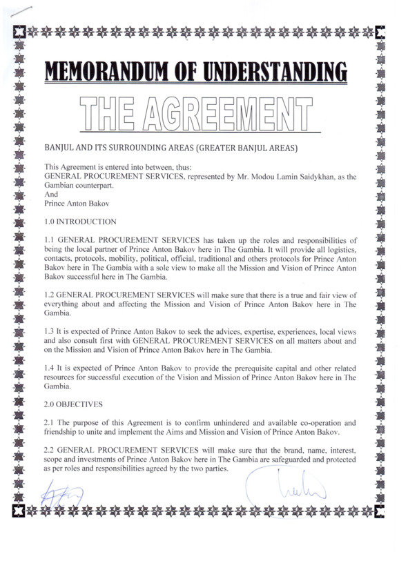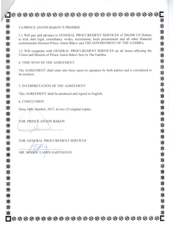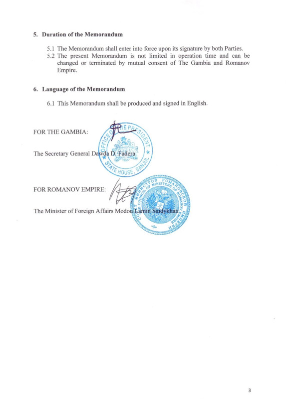 Ну что ж, вроде бы у нас все получилось. Мы получили полную поддержку первых лиц. Мы доказали свою серьезность, перечислив немалую не только по африканским меркам сумму. Мы попросили запланировать официальную церемонию подписания договора на 7 ноября 2017 года, символичный день столетия Великой Октябрьской социалистической революции. Когда, как не в такой день, заявлять о возвращении из исторического небытия династии Романовых? С нами согласились. Что ж, 7 ноября мы при полном параде прибыли подписывать договор в центральный офис правительства в Банжуле.