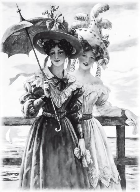 А у белых каменных ворот, которые вели со двора в поле, у старинных крепких ворот со львами, стояли две девушки…