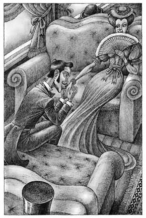 Изломанный веер закрывает хорошенькое личико. Писатель подпирает кулаком свою многодумную голову, вздыхает и с видом знатока психолога задумывается. Локомотив свищет и шикает, краснеют от заходящего солнца оконные занавесочки…