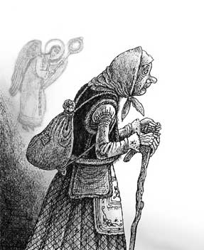 – Авдотью-то за упокой? – удивляется старуха. – Году еще нет, как замуж вышла, а ты на нее уж смерть накликаешь!.. Сам вот, сердешный, путаешь, а на меня злобишься. Ты с молитвой пиши, а коли будешь в сердце злобу иметь, то бесу радость. Это тебя бес хороводит да путает…