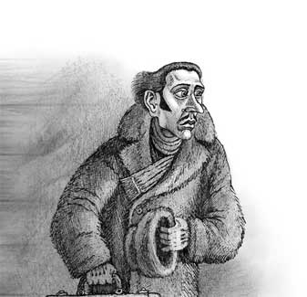 – Вашш… билеты! – обращается Подтягин к пассажиру второго класса, тощему, жилистому человеку, окутанному в шубу и одеяло и окруженному подушками. – Вашш… билеты!