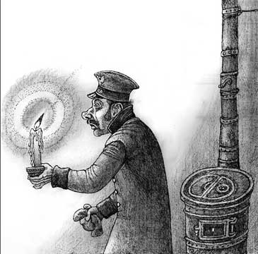 Зайцев (с чемоданом), станционный смотритель (со свечой).