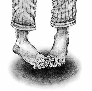 Бесконечно кряхтя и морщась, Муркин натянул на свои ноги два левых сапога и, прихрамывая, отправился к генеральше Шевелицыной. Целый день ходил он по городу, настраивал фортепиано, и целый день ему казалось, что весь мир глядит на его ноги и видит на них сапоги с латками и с покривившимися каблуками! Кроме нравственных мук, ему пришлось еще испытать и физические: он натер себе мозоль.