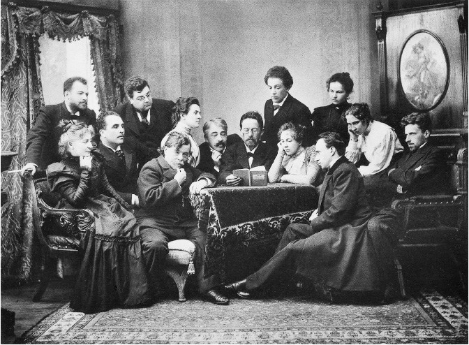 Антон Чехов (в центре) с актерами Московского Художественного театра за чтением пьесы «Чайка». 1899 год[15]15