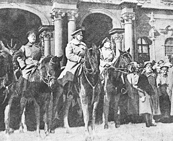 Главнокомандующий Петроградским военным округом Л.Г. Корнилов принимает парад у Зимнего дворца. 13 марта 1917 г.