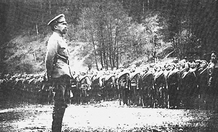 Л.Г. Корнилов выступает перед войсками. 1917 г.