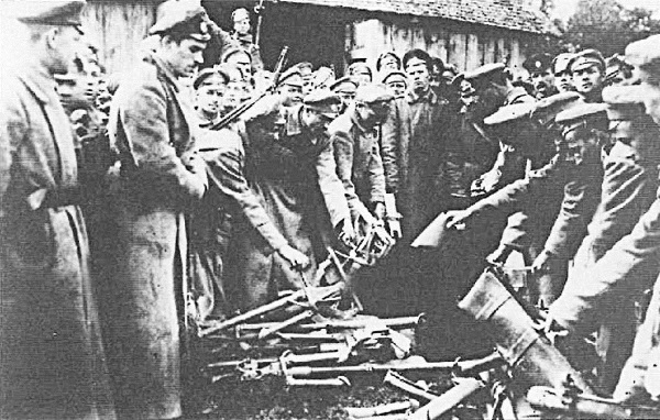 Конец Корниловского выступления – солдаты сдают оружие.