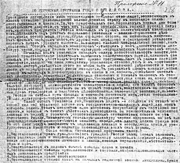 Политическая программа, подписанная лично генералом Л.Г. Корниловым