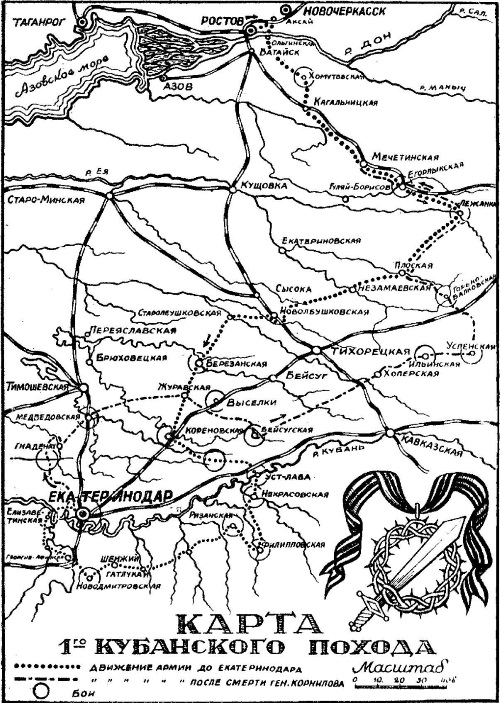 Указав далее мотивы нашего «исхода» с Дона, и, сделав краткий очерк первого кубанского похода, я заканчивал: