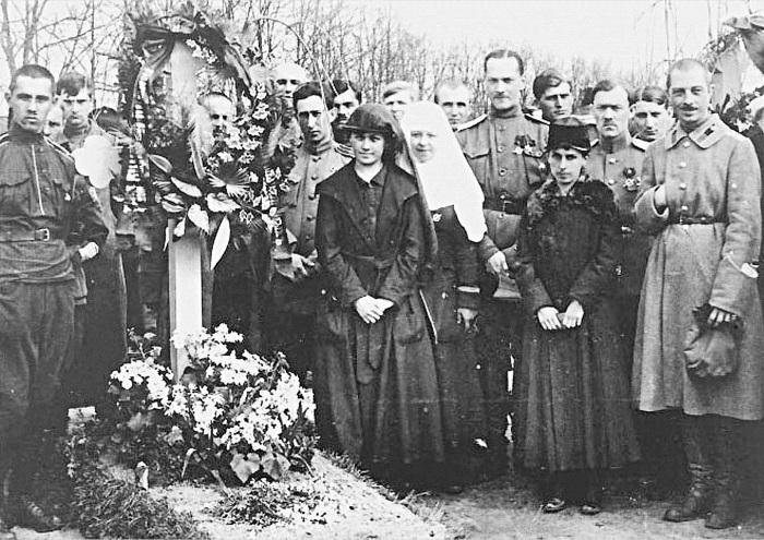 Первопоходники у символической могилы генерала Корнилова. 1918 г