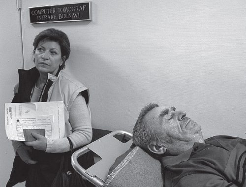 Точно так же построена “Смерть господина Лазареску”: герой не умрет на глазах зрителя, он жив до тех пор, пока идет фильм: это и есть кинематограф, а смерть для Пуйю остается запретной зоной. Находятся и другие параллели. Подобно королеве Маргарите, на протяжении всего пути Лазареску сопровождает отнюдь не сентиментальная, но милосердная проводница – сестра (сестра милосердия: одно из немногих выражений, которое в фильме не теряет, а, наоборот, заново обретает смысл) Миоара Авраам. Кстати, блестяще сыгравшая эту роль актриса Луминита Георгиу играла до Пуйю у Михаэля Ханеке, а после – у других лидеров румынской “новой волны”, Корнелиу Порумбою и Кристиана Мунджиу. Доктора же, обследующие героя с большей или меньшей охотой, но не желающие принимать на себя ответственность оперировать, да и просто госпитализировать несчастного старика, принимают на себя, в точности как у Ионеско, дополнительную функцию палачей.