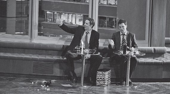Главное – не сроки, а концепция, и еще один вопрос: сможет ли Ханеке адаптировать свою специфическую кинематографическую манеру к столь деликатному материалу? Смог. Более того, довел ее до радикального предела. В кино режиссер любит использовать беспощадно-статичную камеру – и в опере он прибег к сходному приему: единственная впечатляющая декорация не меняется от начала до конца. “Дон Жуана” трудно назвать чисто классицистической оперой, но ригорист Ханеке скрупулезно соблюдает все три единства – времени, действия и места. Место представляет собой коридор гигантского офисного здания, из окна которого виднеются другие такие же небоскребы. Время – ночь; в последние минуты оперы, уже после гибели героя, наступает хмурый рассвет.