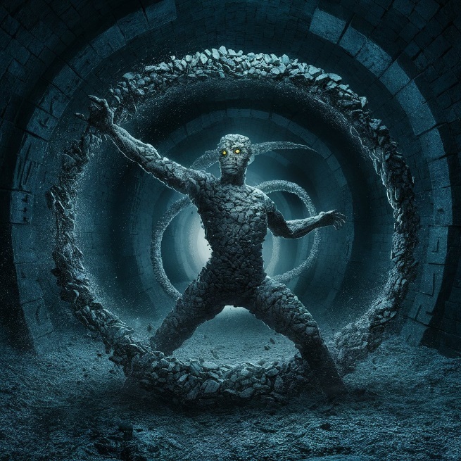 Голем с рокотом переформировался обратно в гуманоидную форму и двинулся на нас. Сама неотвратимость, или сама тупость, ведь он был медленный. Весь пол лабиринта покрывал слой гравия и костей – вот почему ступни Миры изранены от долгого бега, а подошвы кроссовок превратились в месиво. Воистину, земная обувь в Башне долго не живёт. И когда я вмешался в происходящее, голем произвёл естественное усиление, которое не требуется, когда противник один: он пробудил камни и кости с пола, они начали подниматься и закручиваться вокруг голема кольцом.