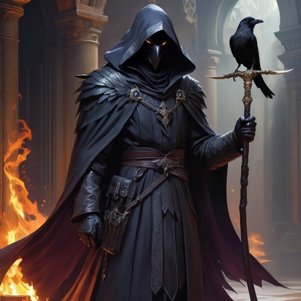 В левой арке что-то сумрачно блеснуло. Я сделал осторожный шаг вперёд и увидел, что там возвышается тёмная фигура в капюшоне, плаще и с чёрной вороньей маской из воронёной стали. Она застыла как бы в толще дымчатого, полупрозрачного стекла. Это мгла? Казалось, можно шагнуть туда, в арку, и встретиться с этой фигурой.