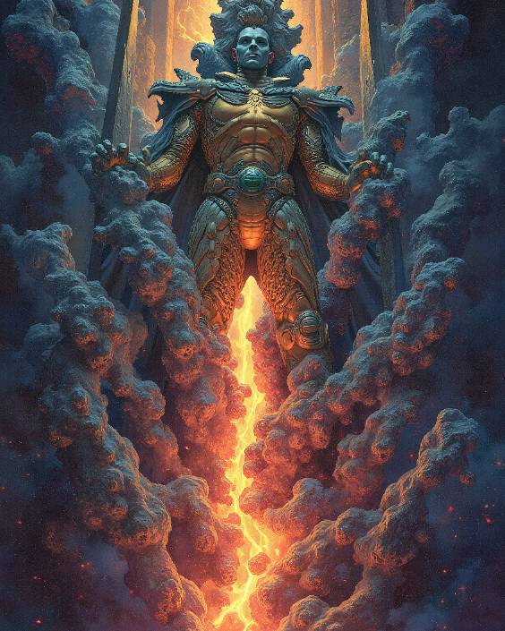 Хорум выплюнул особое слово, и сразу же, моментально ночь разверзлась яркой стеной огня. Пространство распахнулось, из высоченной прорехи повалил едкий дым, заполнивший площадь от канала до магазинов. А там, за прорехой, возвышался подобный башне великан с серо-голубой кожей, напоминавшей ожившую глину, и его глаза пылали яростными лакунами, полными лавы.