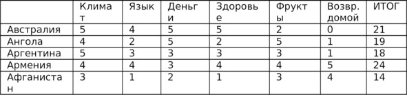 Потом следует посетить города верхней части списка, проверить их и пожить там и составить вторую итерацию (приближение), а может быть потом и третью. Переселиться на год, или на другой долгий срок, таблицу-список не выкидывать, иногда пересматривать.