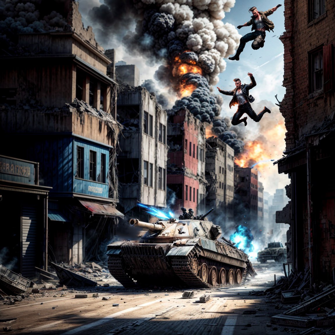 Через тридцать секунд мои парни замерли неподалёку на низком старте. Едва с нами поравнялись «Абрамсы», мы с Соем рванули вниз. Он скользнул Рывком, словно призрак, я, ускорившись и почувствовав как воздух стал тягучим, словно кисель, легко спрыгнул с двенадцатиметровой высоты в открытый люк танка и начал там свой смертельный танец.