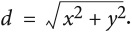 Относительно этих осей точка P имеет координаты (x, y), и по теореме Пифагора мы легко получаем, что она находится от центра координат на расстоянии