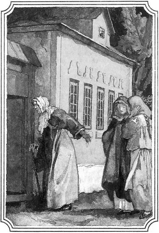 Ивановна хотела было отвечать, но старуха не дала ей выговорить ни слова. Она встала, выпроводила их из дому и захлопнула за ними дверь.