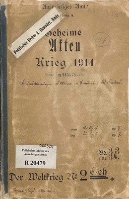 Первый – совершенно секретная телеграмма № 551 офицера связи МИД Германии Грюнау от 21 апреля 1917 года в Штаб германского главнокомандующего. Вот обложка хранения в архиве МИД Германии, факсимильный текст телеграммы и перевод на русский язык.
