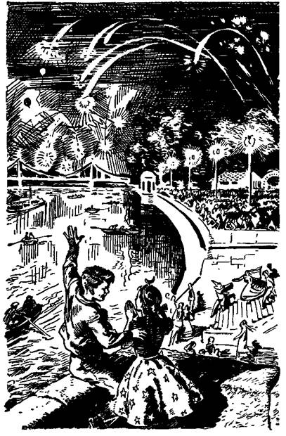 Вдруг свет погас, померкли луна и звезды, потому что ударил залп и тысяча стремительных ракет умчалась и затанцевала в небе.