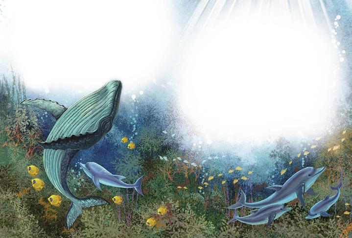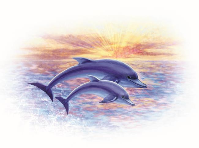 – Малы́ш, – проговори́ла дельфи́ниха Тама́ла. – Да ты совсе́м кро́шка. Смотри́те, он то́лько роди́лся, а на его́ хвосте́ уже́ след зубо́в.