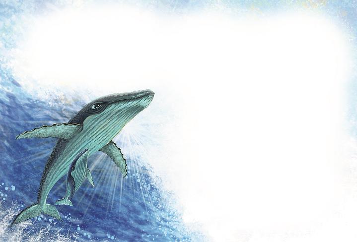 Ги́ббо скова́л страх. Пото́м ра́дость окати́ла его́ волно́й, и се́рдце застуча́ло так ча́сто, что он хоте́л вы́прыгнуть из воды́, уда́рить хвосто́м, что́бы все зна́ли: у него́ роди́лся сын! Но вме́сто э́того он осторо́жно подхвати́л малыша́ и поплы́л вверх. Ему́ бы́ло стра́нно, что таки́е гру́бые плавники́ каса́ются его́ так легко́. Он по́днял сы́на над океа́ном.