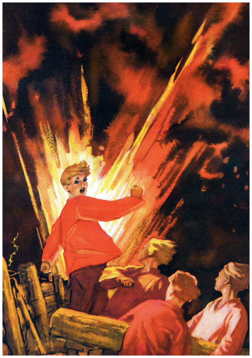 Вдруг как взорвались зажжённые ящики! И так грохнуло, будто бы тысячи громов в одном месте ударили и тысячи молний из одной тучи сверкнули.