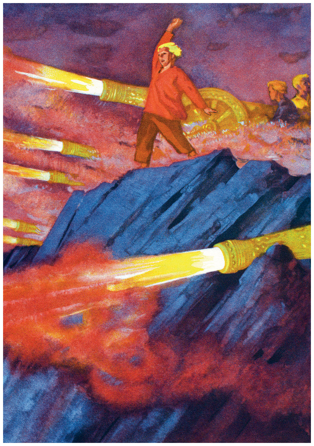 Но тут из-за дыма и огня налетела буржуинская сила, и скрутила и схватила она Мальчиша-Кибальчиша.