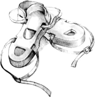 Инверсионные ботинкиВот еще один образец спортивного снаряжения, который некогда пользовался популярностью, но в наши дни его можно увидеть лишь изредка. Инверсионные ботинки позволяют вам висеть вниз головой и растягивать позвоночник. Те, кто ратует за применение этого устройства, указывают на тот факт, что сила тяготения постоянно давит на наше тело: позвоночник сжимается, внутренние органы тянет к земле. В результате большинство из нас к шестидесяти годам становится, по меньшей мере, на два дюйма ниже, чем в двадцать пять лет. Считалось, что растягивание позвоночника и противоположное давление на внутренние органы при висении головой вниз противодействует этому процессу. По себе могу сказать, что такая поза оказывает расслабляющее воздействие.