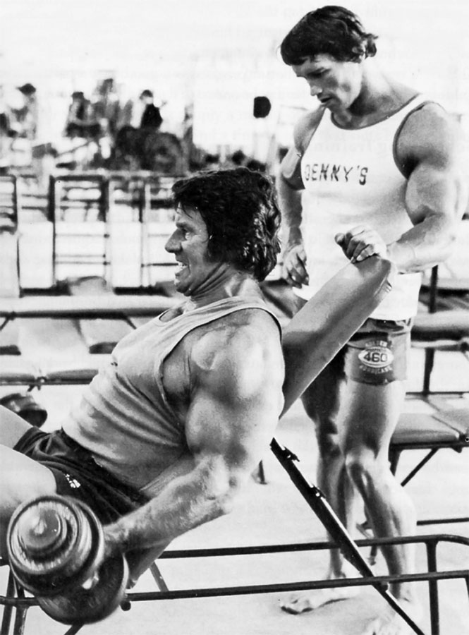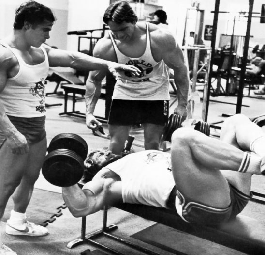 Я тренировался с разными партнерами для достижения разных результатов, в зависимости от их индивидуальных качеств. Мы с Франко встречались по утрам, поскольку он тренировался лишь один раз в день, и это был период самых интенсивных нагрузок. С Дейвом Дрейпером я проводил тренировки для развития широчайших мышц спины; Дейв очень любил работать в зале и тренировался часами, выполняя бесконечные серии. Фрэнк Зейн был хорошим партнером для проработки отдельных групп мышц для усиления их рельефности. У каждого партнера есть свои сильные стороны, поэтому лучше тренироваться с разными людьми, чтобы получить максимальную пользу от сотрудничества.