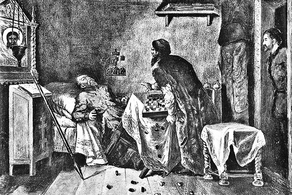 Археологи постоянно находят на месте древних русских поселений шахматные фигуры. На одном только Неревском раскопе Новгорода археологами было найдено в слоях 13–15 веков множество шахматных фигур, причём в слое 15 века шахматы находятся почти в каждой раскопанной усадьбе. А в 2010 году шахматного короля нашли в слое 14–15 веков в Новгородском Кремле, рядом с резиденцией архиепископа. В Европе в 1393 году Регенсбургский собор изъял шахматы из числа запрещённых игр. В России сведений об официальной отмене церковного запрета на шахматы нет, но по крайней мере с 17–18 века этот запрет фактически не действовал. Играл в шахматы царь Иван Грозный. По преданию, он и умер за шахматной доской. Английский дипломат Джером Горсей так описал этот драматичный час: «Бельский поспешил к царю, который готовился к бане. Около третьего часа дня царь пошел в нее, развлекаясь любимыми песнями, как он привык это делать, вышел около семи, хорошо освеженный. Его перенесли в другую комнату, посадили на постель, он позвал Родиона Биркина, дворянина, своего любимца, и приказал принести шахматы. (Запись на полях рукописи: «[Расставил] все шахматные фигуры, кроме короля, которого он никак не мог поставить на доску».) Он разместил около себя своих слуг, своего главного любимца и Бориса Федоровича Годунова, а также других. Царь был одет в распахнутый халат, полотняную рубаху и чулки; вдруг ослабел и повалился навзничь. Произошло большое замешательство и крик, одни посылали за водкой, другие – в аптеку за ноготковой и розовой водой, а также за его духовником и лекарями. Тем временем он испустил дух». Даже, если эта легенда противоречит действительности, она о многом говорит.