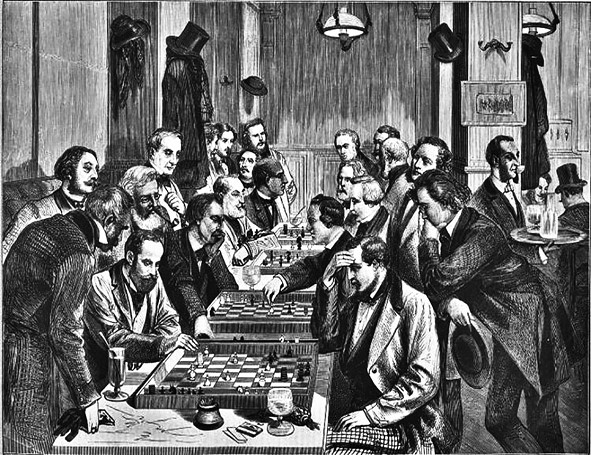 В XIX веке стали проводиться международные матчи (с 1821 г.) и турниры (с 1851 г.) по шахматам. Игра набирала популярность. В шахматы играли в кафе, на бульварах, в салонах и театрах. На первом крупном турнире, проходившем в Лондоне в 1851 году, одержал победу немец Адольф Андерсен. Именно он стал неофициальным «шахматным королём», его считали сильнейшим шахматистом мира и основателем комбинационном школы. Впоследствии звание лучшего из лучших с успехом оспорил Пол Морфи (США) – сильнейший шахматист того времени. В 1858 году он разгромил Андерсена со счётом +7–2=2. Но Морфи, как «незаконная комета в кругу расчисленных светил», быстро ушел с шахматной сцены, и терпеливый Андерсен вновь стал первым. Только в 1866 году Вильгельм Стейниц выиграл у Андерсена матч со счётом +8–6 и стал новым «некоронованным королём».