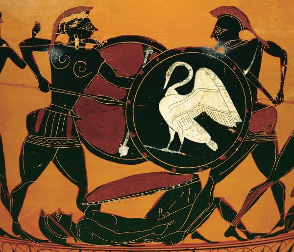Бой Аякса с Гектором за тело Патрокла. Роспись чернофигурной амфоры.540-е годы до н. э.