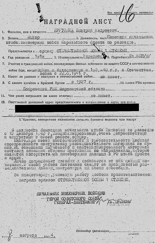 – С подчиненными дружба была. Люди были многонациональные, жили весело и дружно. Неуставных отношений не было. Меня солдаты берегли. Все же видят друг друга. Любые бесчинства со стороны командира окончились бы для него гибелью в первом же бою. Я в этом не сомневаюсь. Что касается начальства, то у нас к командиру батальона было отношение очень хорошее. Он же впереди шел со своим начштаба и комиссаром. К полковому начальству отношение было нормальное. Мне приходилось докладывать комдиву Гусевскому, начштаба Орлянскому и начальнику разведки Никифоровичу. Меня всегда внимательно выслушивали, не перебивали. Вообще, я считаю, что Гусевский – талантливый генерал. Пришлось однажды докладывать Мехлису, который к нам приезжал в Сауноярви в штаб дивизии, где провел сутки. Вот Мехлис оставил очень тяжелое впечатление. Он грубый, грозил расстрелять меня, если пленного не приведу ему наутро. Мы всю ночь проползали – никто из дотов у них не выходил. Когда я пришел, комбригу доложил, говорю: «Сейчас меня расстреляют». Гусевский меня ободрил: «Ничего, завтра пойдешь, он выйдет, и ты его возьмешь. А лишний раз рисковать не стоит». Он доложил Мехлису, и Мехлис меня уже не вызывал.