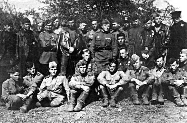Сидят (слева направо): Коля Зонов – погиб в октябре 1943 г., Григорий Кривошеев, Вениамин Верютин – погиб в конце 1944 г., Гриша Куценко – погиб 8 мая 45-го, Семен Базнов – погиб в мае 44-го, Саша Ожерельев – погиб, ГСС Николай Выдриган – погиб в 1946 г., Иван Пономарев – умер в 1967 г., двое летчиков, не помню фамилии: были с нами мало – погибли, Иван Боровой – умер в 1956 г. Стоят (слева направо): ГСС Иван Пишкан – умер в 1972 г., ГСС Алексей Решетов – умер в 2001 г., Анатолий Рогов, Сергей Евтихов – умер в 1983 г., Николай Никулин, Борис Еремин, Николай Самуйлик – погиб в 1943 г., Сергей Филин, ГСС Фотий Морозов – умер в 1985 г., Виктор Ворсонохов, П. Газзаев, ГСС Игорь Нестеров – умер 21 мая 1991 г., Леонид Бойко – погиб в 1944 г., Иван Демкин, ГСС Валентин Шапиро. 347