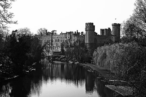 Вид на Уорикский замок с реки Эйвон. Средневековый замок, расположенный в городе Уорик (графство Уорикшир в центральной Англии), на берегу реки Эйвон. Вильгельм I Завоеватель построил этот замок в 1068 году на месте или около англосаксонской крепости в Уорике. Замок использовался в качестве укрепления до начала XVII века, когда Фульк Гревилл, 1‐й барон Брук превратил его в загородное поместье