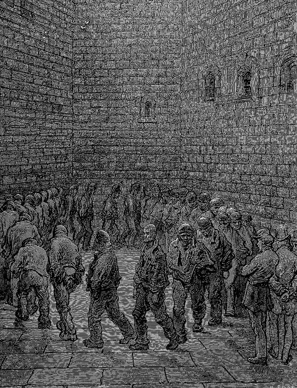Прогулка заключённых во дворе Ньюгетской тюрьмы (главная тюрьма Лондона). Гравюра Г. Доре (1872)